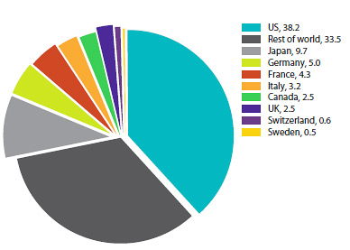 Distribution of Drug Sales Among Major National Markets, 2013 (Figure 13 of the full Annual Report)